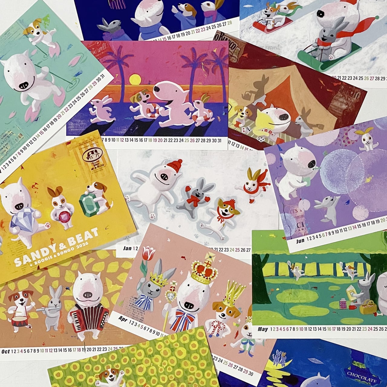 うさぎのサンディといぬのビートの日常をユーモラスなイラストで描かれた、心温まる楽しいカレンダー。